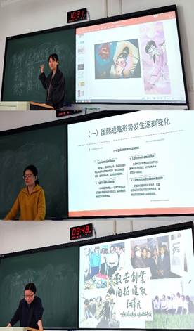 青年教师教学基本功和竞赛表现给予了充分肯定。强调思政课教师必须具有扎实的理论功底,教学设计要以“立德树人”为宗旨,把新时代生动实践中的鲜活案例带进课堂,联系实际深入浅出地阐释理论;青年教师要加强语言、板书、课件设计制作等基本功训练。