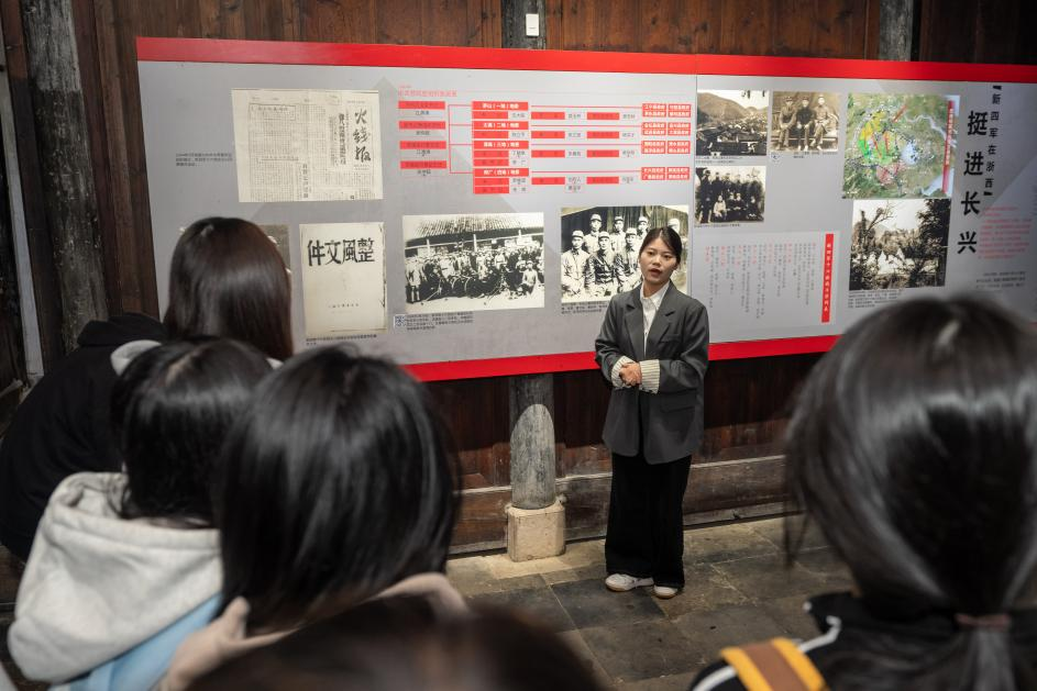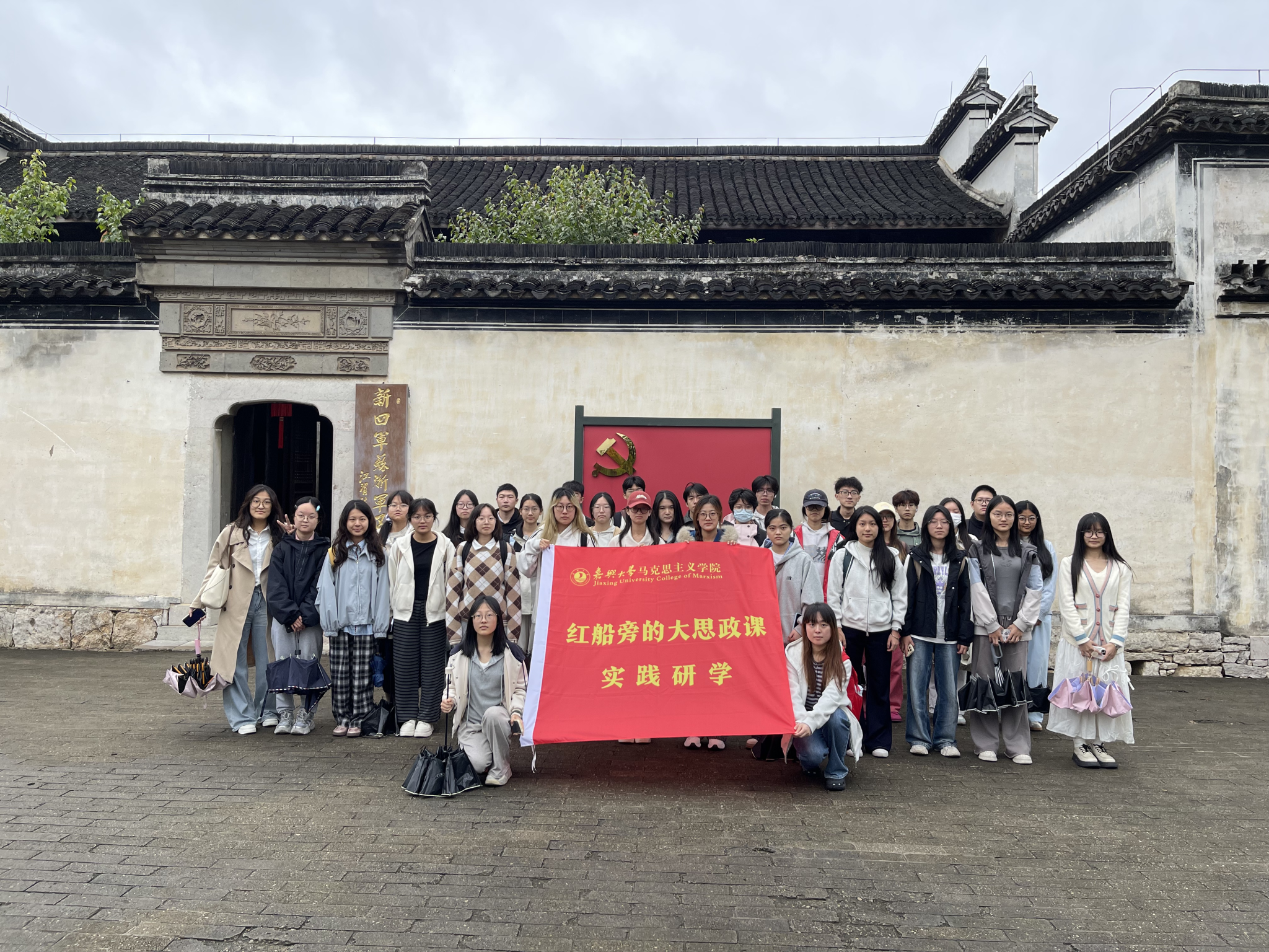 教师带领《习近平新时代中国特色社会主义思想概论》近90名学生走出校门走进浙江省长兴县新四军苏浙军区纪念馆,开展“大思政课”实践研学活动,通过参观、讲解与体验,传承革命精神,深化思政教育。