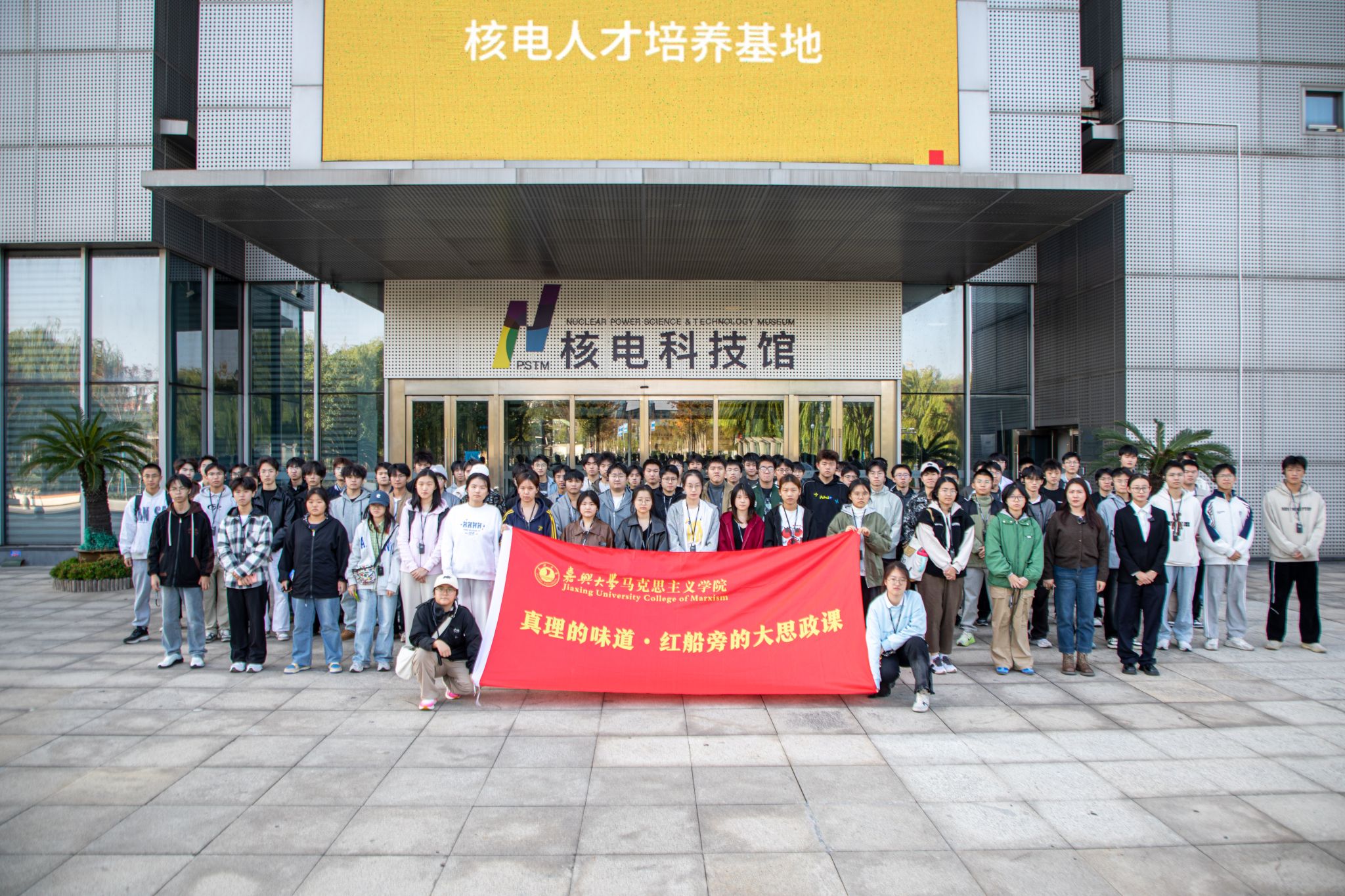 为深化实践教学改革,拓宽学生科技视野,激发爱国热情与专业使命感,创新思想政治理论课教学模式,让思政教育“活”起来。2025年11月13日,马院教师带领《马克思主义基本原理》课程电气241班、电气242班的80多位学生,前往全国科普教育基地、爱国主义教育基地——秦山核电馆,开启思政课实践教学。