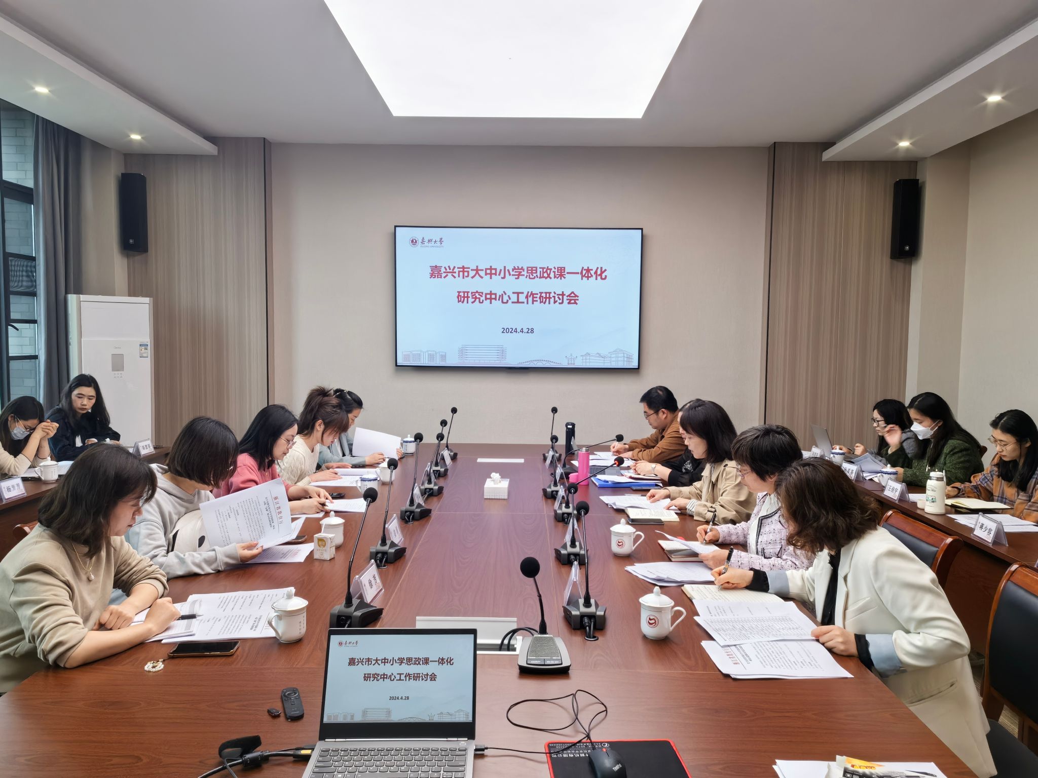 厚德楼350会议室召开。嘉兴市大中小学思政课一体化研究中心首批成员单位的研究员以及嘉兴职业技术学院美姬社区