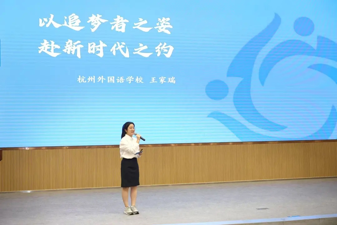 王家瑞同学分享了“梦虽遥,追则能达;愿虽艰,持则可圆”这句话,她希望以此与同学们共勉,“每一个不曾辜负时代的梦想,都将在奋斗中绽放光芒,每一个用心耕耘的日子,都在书写属于我们这代人的辉煌。”