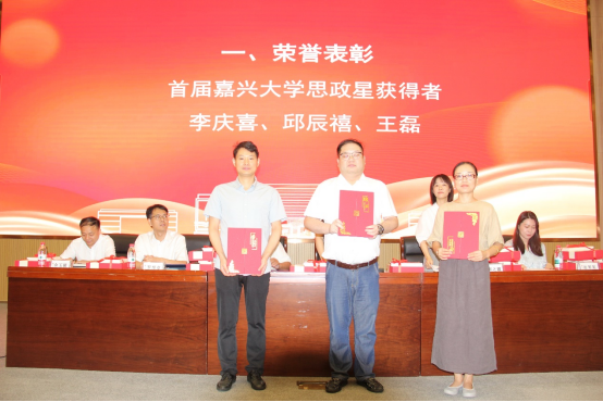 会议的第一阶段首先表彰了过去一年在思政课建设、学科科研、人才队伍等方面获得的各类荣誉的优秀教师。
