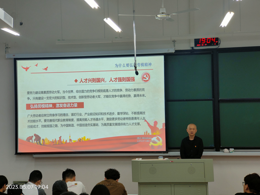 于5月7日以线上线下相结合的方式,组织1600多名学生,聆听了全国劳动模范廖洪德主讲的思政课《红心·匠艺·追梦人——在平凡的岗位坚守初心实现人生价值》,扎实推动“‘红船精神+’大思政课”建设。