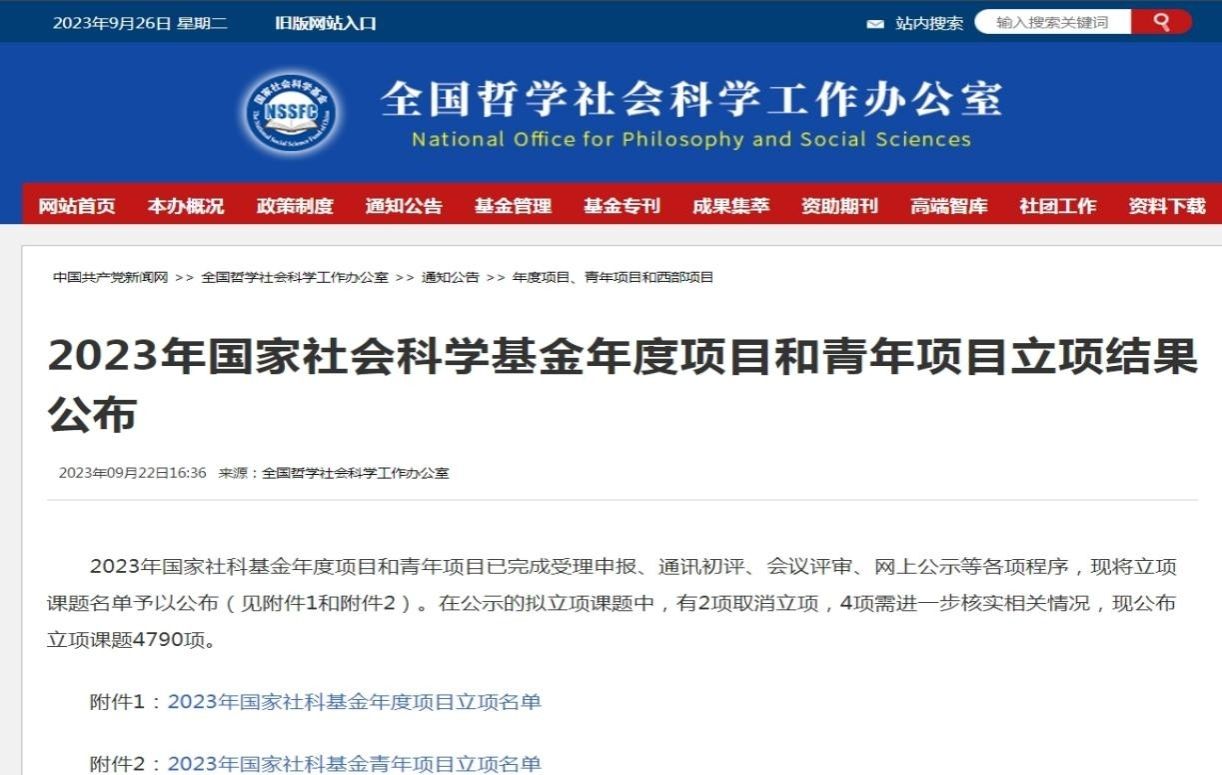 近日,根据全国哲学社会科学工作办公室《2023年国家社会科学基金年度项目和青年项目立项结果公布》的通知,美姬社区