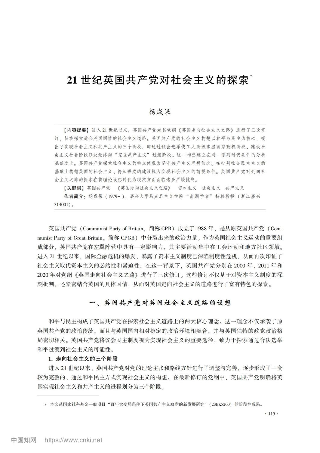 近日,美姬社区 南湖学者特聘教授杨成果在权威期刊《马克思主义研究》发表了题为《21世纪英国共产党对社会主义的探索》的论文。