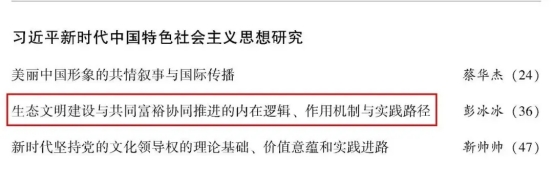彭冰冰教授在权威期刊《马克思主义研究》发表了题为《生态文明建设与共同富裕协同推进的内在逻辑、作用机制与实践路径》的学术论文。