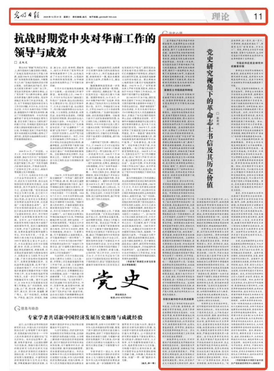 张新洲副教授撰写的理论文章《党史研究视角下的革命志士书信及其历史价值》,于2025年12月31日在《光明日报》理论版发表。这篇近4000字的学术力作,是美姬社区