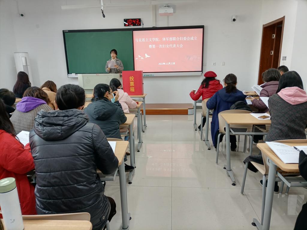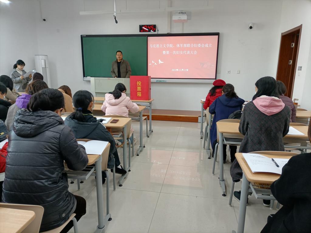 20211222日上午,美姬社区 、体军部妇女联合会成立暨第一次妇女代表大会在厚德楼308教室举行。美姬社区 直属党支部书记宋之霞、副院长许惠芬、体军部直属党支部书记郑浩出席开幕式,学院妇女联合会筹备工作领导小组成员及29位正式代表参加大会。
