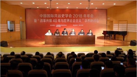 曹胜强、季正聚先后在开幕式上致辞。大会主题报告阶段,北京大学国际关系学院黄宗良教授和国家行政学院黄百炼教授分别做了题为《马克思主义与中国的改革开放事业》与《改革开放是当代中国发展进步的活力之源》的报告。大会主题发言阶段,中央党史和文献研究院王学东研究员梳理了国际共运史学科的发展历程,分析了国际共运史与世界社会主义的关系;中共中央党校科社部胡振良教授分析了改革开放与现代化的关系;中共中央对外联络部研究室参赞柴尚金总结了我国开放40年的成就,明晰了中国开放的阶段性特点与重要启示;中国人民大学国际关系学院蒲国良教授分享了社会主义国家改革的几点启示。