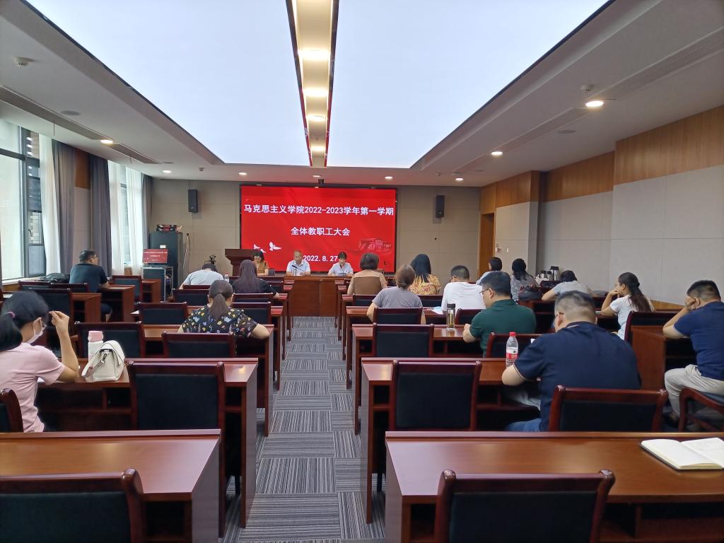 2022年秋季学期开学全体教职工大会在兴政楼246举行。大会由党支部书记宋之霞主持,全体教职员工参加会议。
