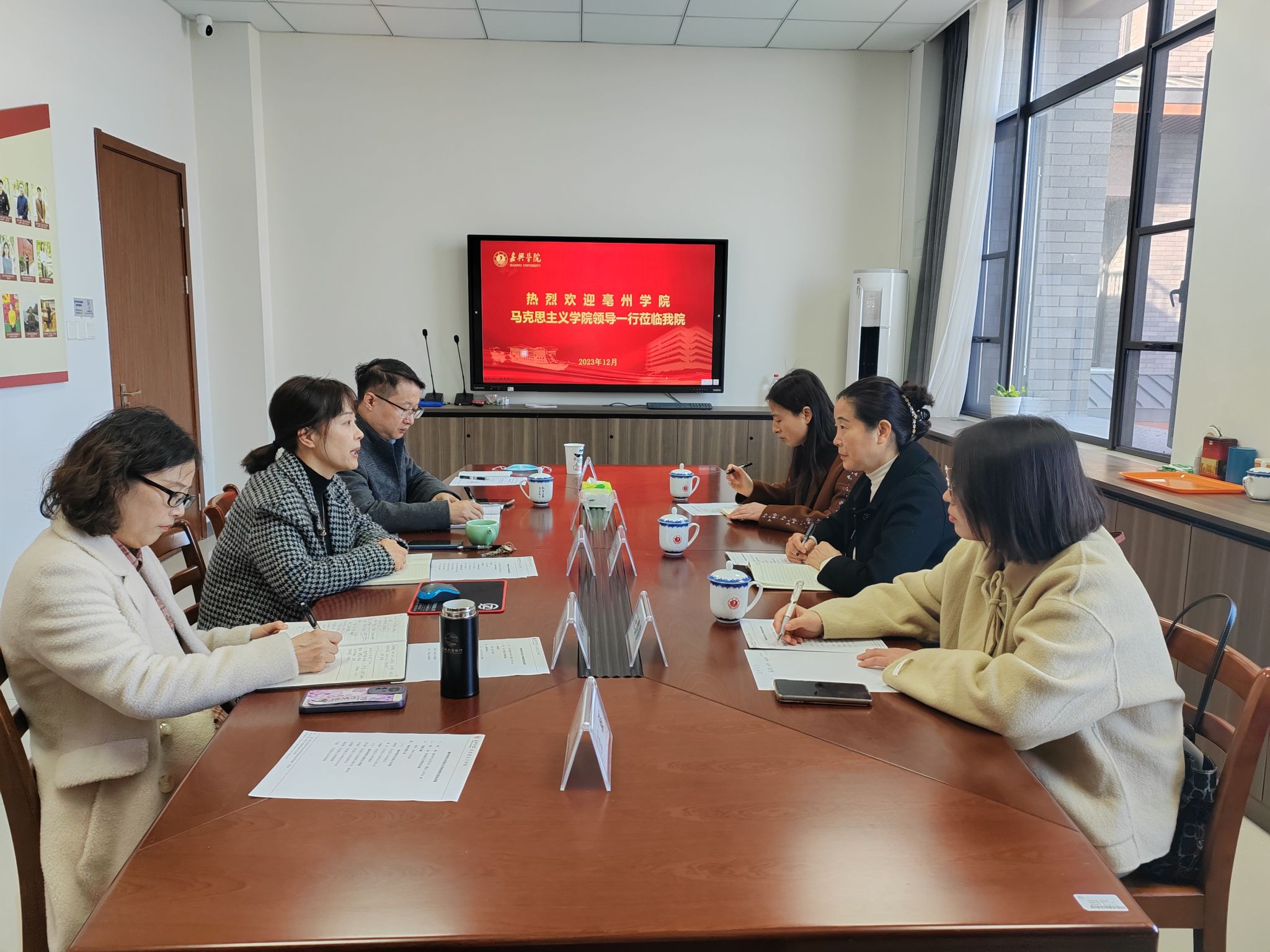 12月8日上午,亳州学院马克思主义学院院长张慧芳一行3人到美姬社区 交流座谈。美姬社区 书记宋之霞、副院长许惠芬、办公室主任余珊珊及部分专任教师参加了座谈。
