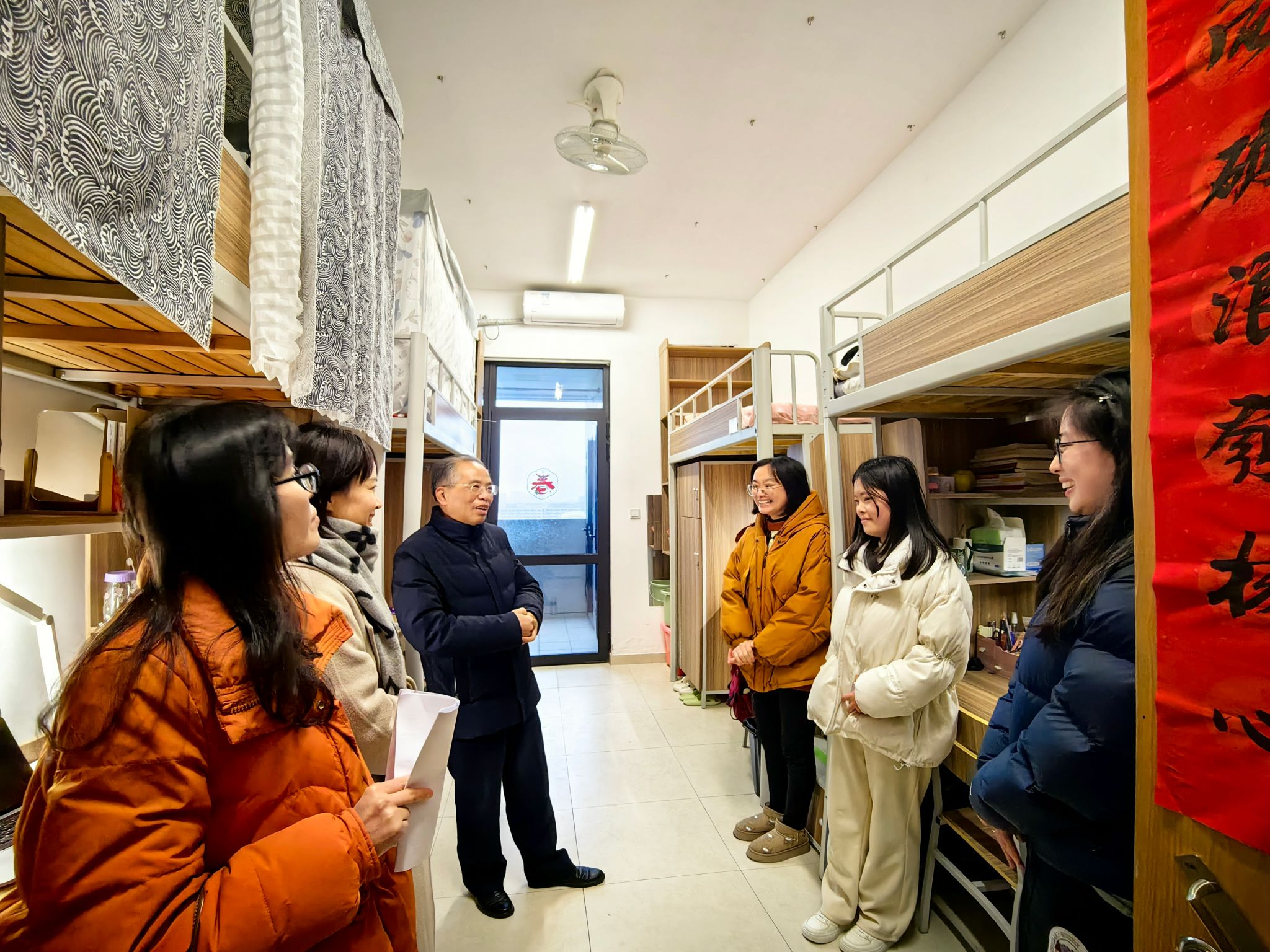 下午,校党委副书记钱方明、学院宋之霞书记及相关老师深入研究生宿舍,了解学生返校情况,与研究生开展亲切交流。钱方明从入学准备、健康管理、安全提醒等多方面引导同学们尽快进入学习状态,以便更好地适应新学期。