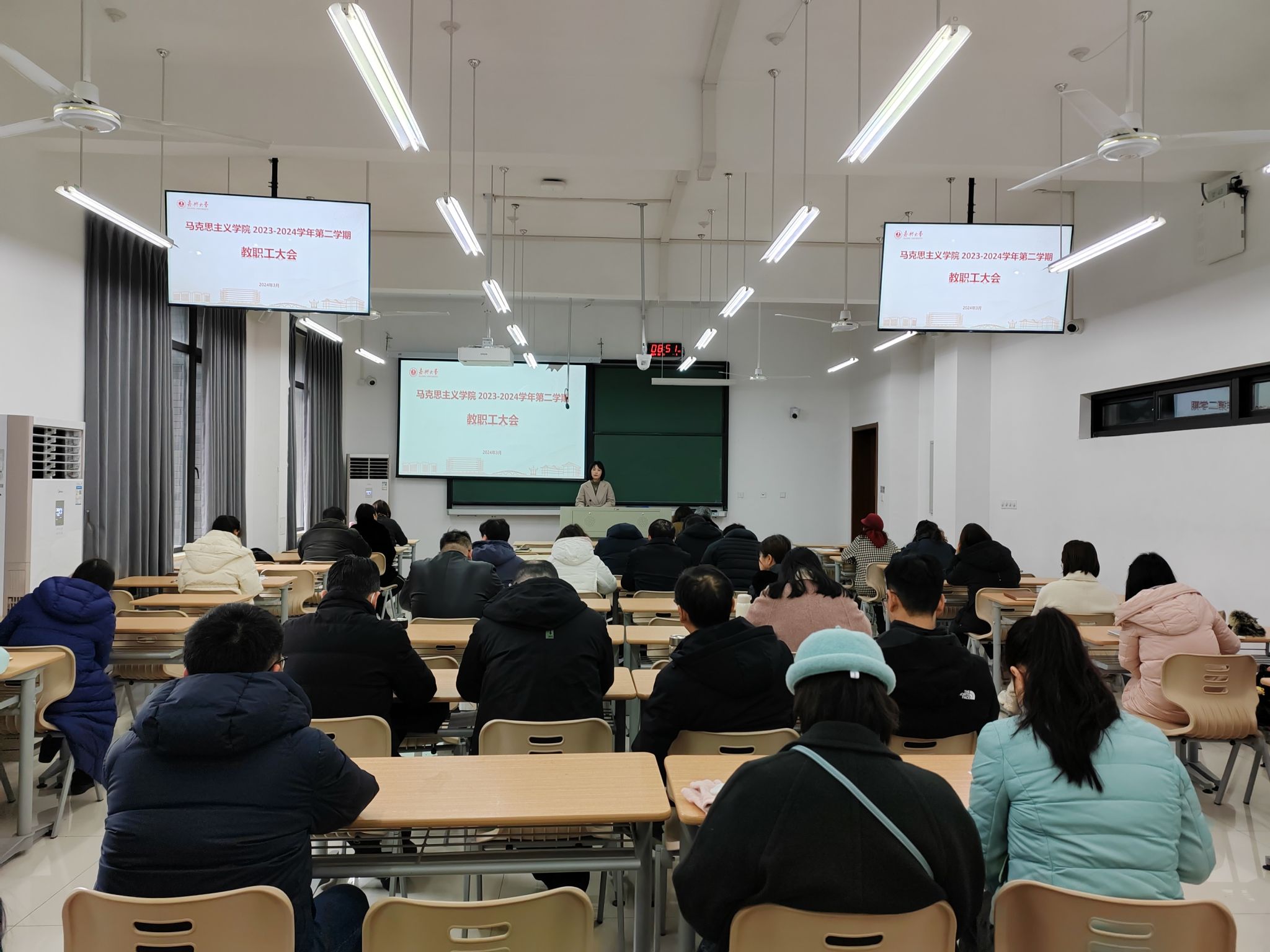 在厚德楼151召开学院全体教职工大会。会议由院长吕延勤主持。