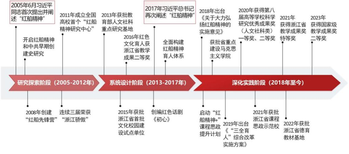 这一育人体系的形成,历经了研究探索、系统形成与深化实践三个阶段,是多年积累和创新的结果,“在研究中心团队前期扎实地研究下,我们形成了一系列系统阐释的成果,精心打造红船精神学术研究高地。这为我们开展红船精神育人提供了坚实的学理支撑。”人文社科处处长彭冰冰教授告诉记者,在学术研究的基础上,中心人员与学校思政课教师、专业课教师、思政工作人员及其他教职工一起,不断优化完善红船精神育人“大思政课”体系,校地共建红船精神实践育人共同体,全面构筑红色文化育人场域,积极营造“三全育人”良好生态,推动了红船精神“五化”育人体系的形成。